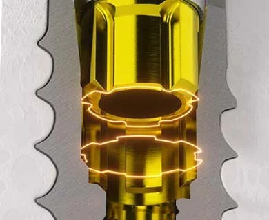 6-CAM tengingin er hönnuð til að bjóða upp á sveigjanlega stöðu tannplanta ásamt því að einfalda ísetningu tannplanta í bein og ísetningu abutments í tannplanta.